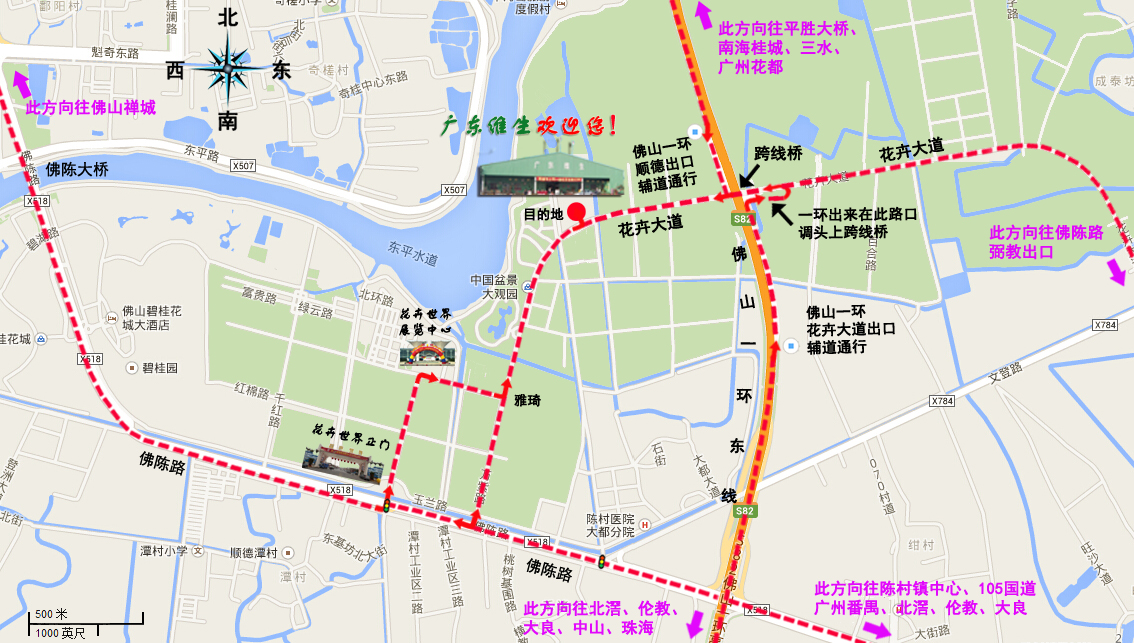 二、 西面:从佛山禅城方向到广东榴莲直播232IOSAPP下载进入窗口:过佛陈大桥,向佛陈路广州方向走2.9公里,于花卉世界正门红绿灯处转左,入花卉世界芳华大道;直行580米右转进入牡丹路(即展览中心前右转),沿牡丹路行驶390米,左转进入花卉大道;沿花卉大道行驶800米,到达广东榴莲直播232IOSAPP下载进入窗口(前进方向左边)。