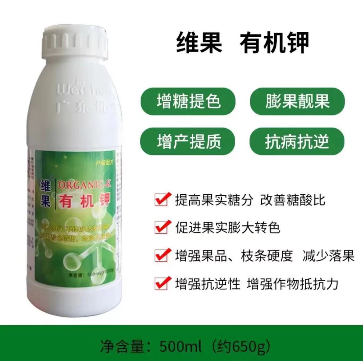 规格:500ml*20瓶 描述:1、提高果实糖分,改善糖酸比; 2、促进果实膨大转色; 3、增强果品、枝条硬度,减少落果; 4、增强抗逆性,增强作物抵抗力